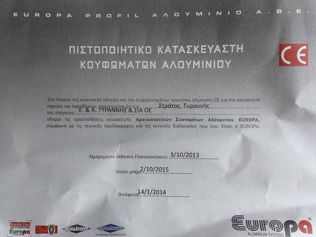 Πιστοποιημένος Κατασκευαστής EUROPA.