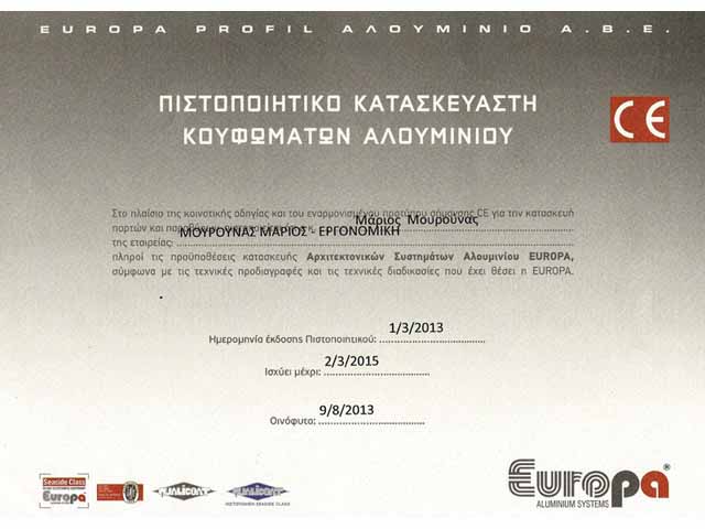 Από το 2000 η επιχείρηση "Εργονομική" του Μουρούνα Μάριου, δραστηριοποιείται στον χώρο του αλουμινίου με κατασκευές και τοποθετήσεις κουφωμάτων.